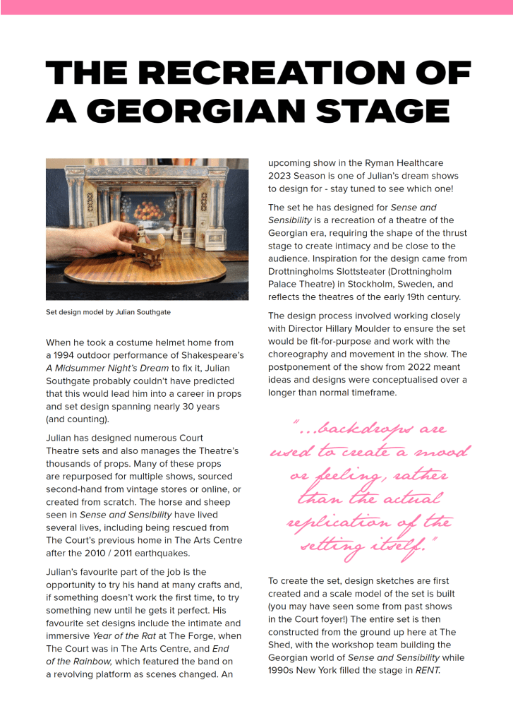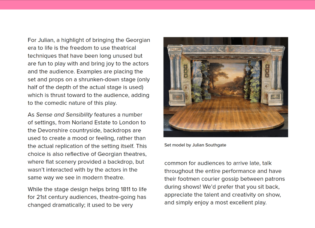 Article written for the show programme of Sense and Sensibility at The Court Theatre.
