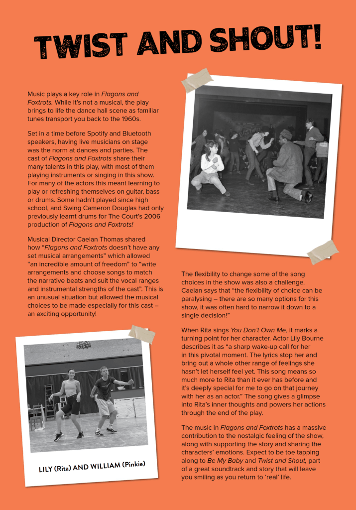 Article written for the programme of Kiwi comedy Flagons and Foxtrots at The Court Theatre, set in the dancehall scene of the 1960s.